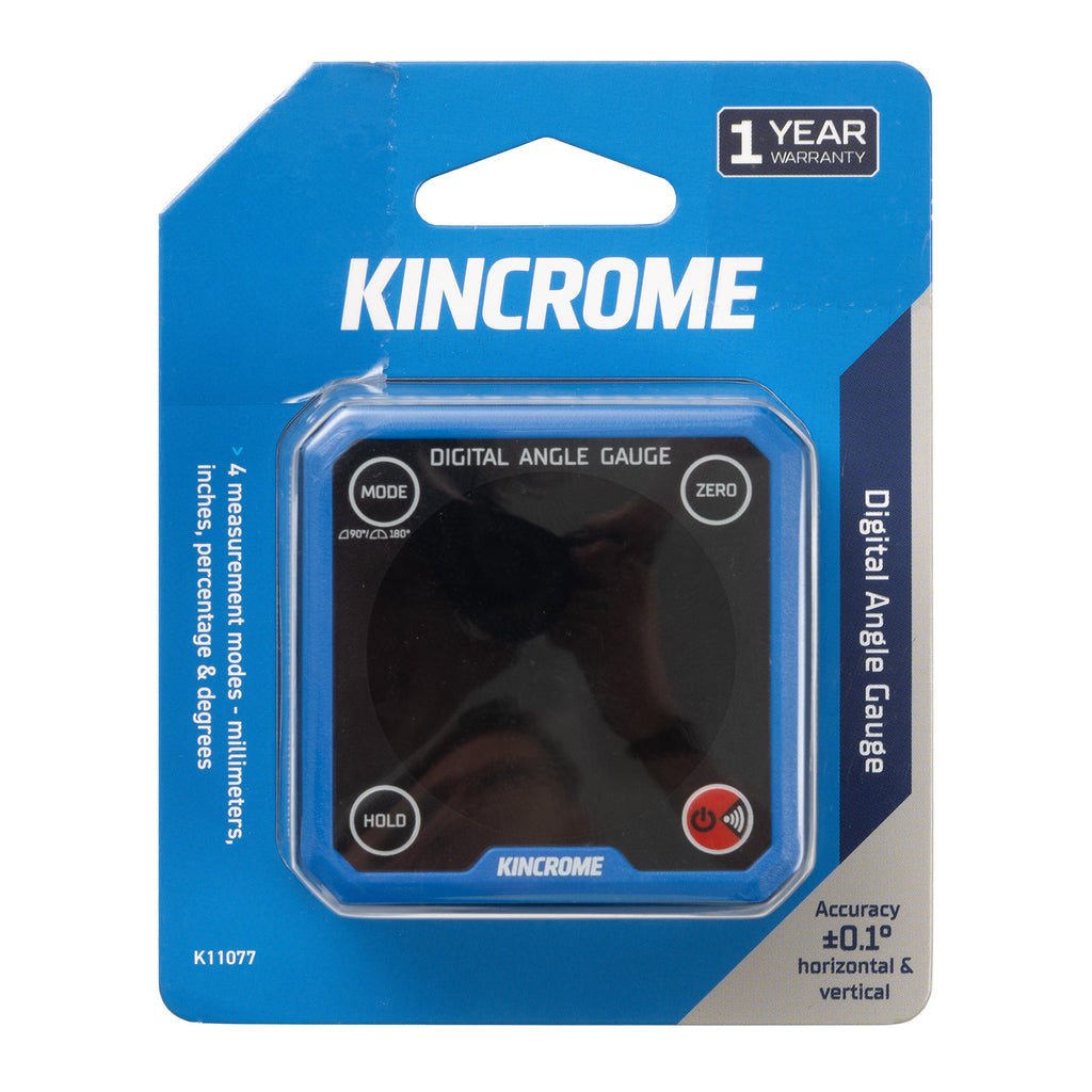 Engineered for stability and control, the strong magnetic base securely attaches to metal surfaces, and the V-groove edges provide perfect alignment on curved materials such as pipes and conduits. Whether you're setting blade angles, checking slopes, or aligning structural elements, the Kincrome Digital Angle Gauge delivers accuracy you can count on.