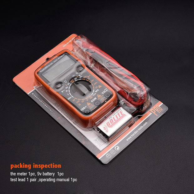 DC Current, Resistance, Continuity, Diodes, Transistor hFE and so on. The Meter complies