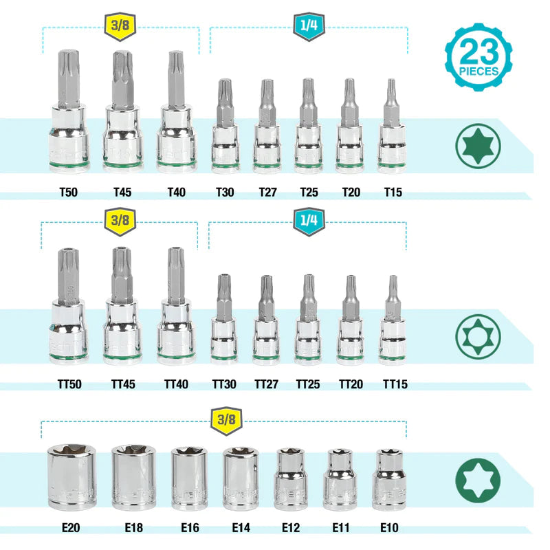 DURATECH 23-Piece Internal & External Star Bit Socket Set