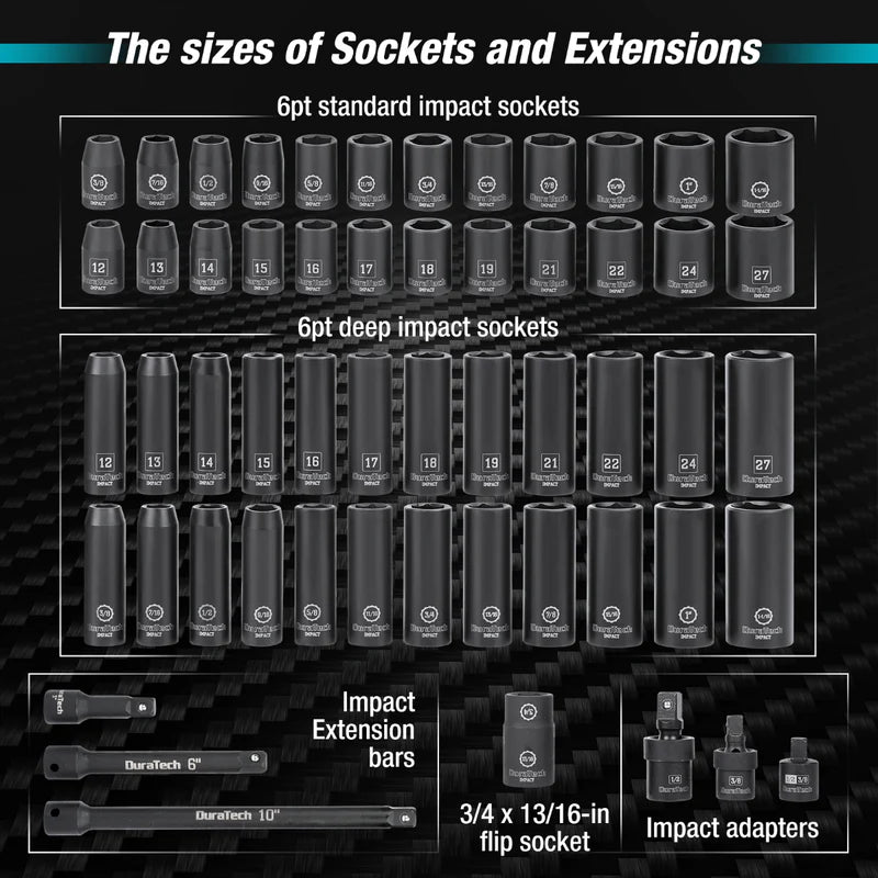DURATECH 55-Piece 1/2" Impact Socket Set