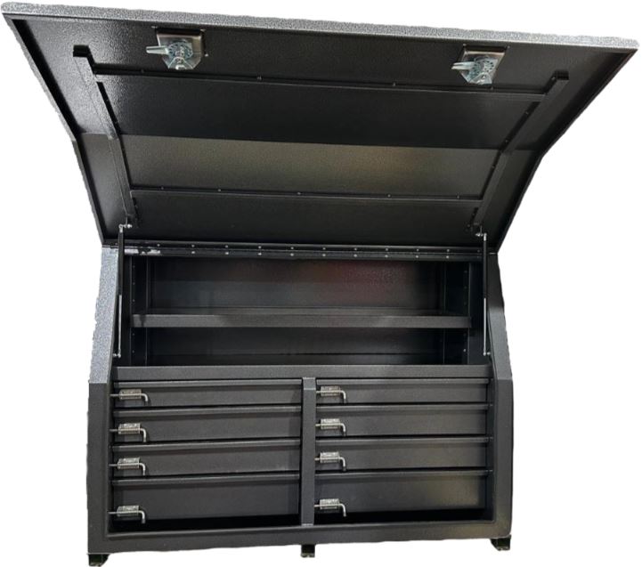 The Stafford Eight Drawer Truck Tool Box is a heavy duty gauge steel fabricated tool box. Water proof and lockable, this tool box is made to combat the harsh environments of living on the back of your truck. With 1.5mm thick walls, four drawers, gas struts and a powder coated finish this large storage space is the tradesman’s best mate.
